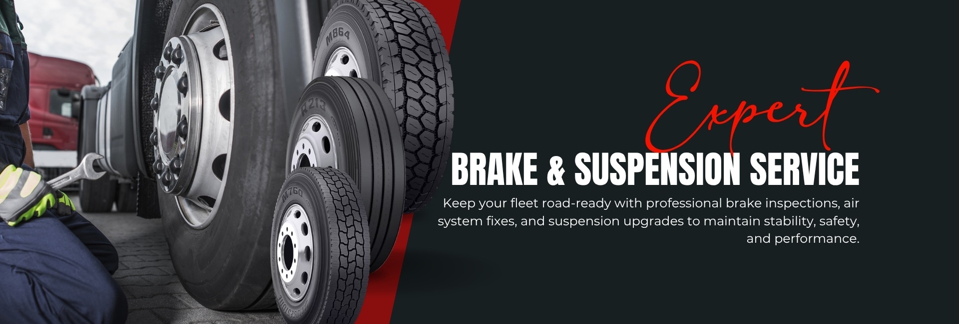 Comprehensive maintenance ensures optimal traction, reliable braking, balanced wheels, and long-lasting tires, keeping trucks and trailers safe and road-ready.